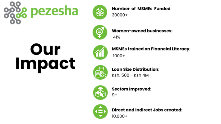 Our journey to this achievement has been fueled by a resolute commitment to fostering positive impact. Over the years, Pezesha has left an indelible mark on the financial landscape in Kenya, Uganda, and Ghana by providing access to credit and financial services to underserved and unbanked communities. Through our innovative approach, we have empowered more than 30,000 small enterprises operating in different sectors through an embedded finance approach, enabling them to thrive and contribute to their local economies.